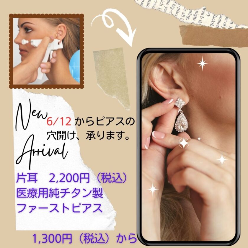 お待たせいたしました。いよいよ6/12火曜日からピアスホール作成を開始します。